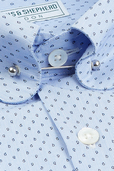 Pin Collar Shirt - Blue Print Curve Collar